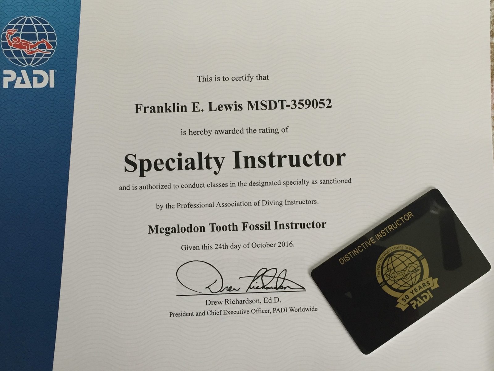 Hey Kids! DiveWithFrank is now certified to teach the PADI Megalodon (Shark) Tooth Fossil Diver distinctive specialty. What better way to get ready and really
